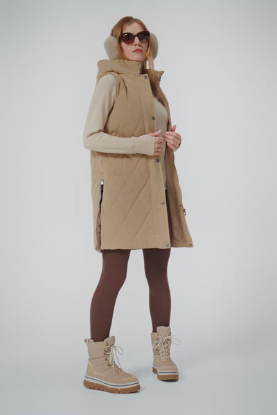 Wrap yourself in the cozy elegance of our Diamond Long Puffer Vest. Featuring sleek quilting and a protective hood, it delivers warmth and style while remaining lightweight. With its zip closures and refined details, it’s the perfect layer for cool days, whether you’re in the city or enjoying the outdoors.